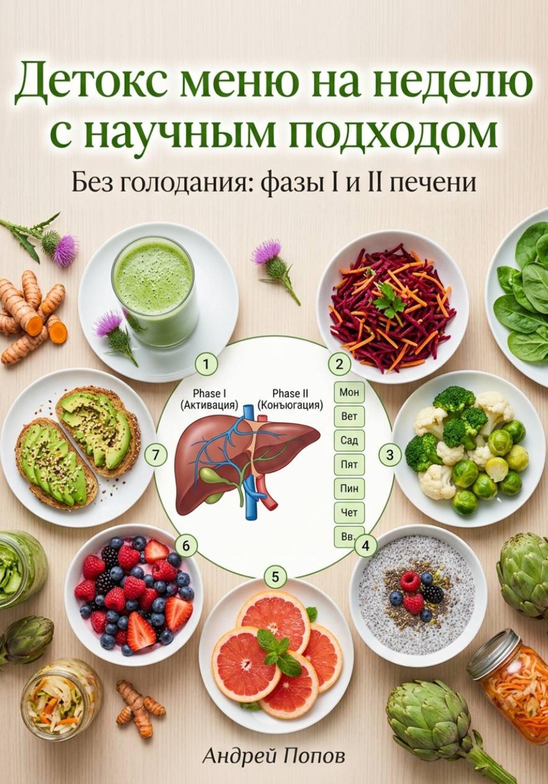 Эта книга раскроет фазы I и II печёночной детоксикации, миф о шлаках vs реальная нагрузка и 7-дневное меню: